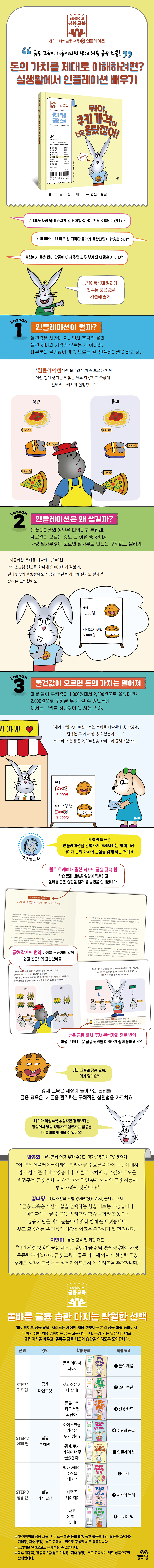 인플레이션은 그 원인이 복잡하고 다양해서 어른도 이해하기 쉬운 개념은 아니에요. 《뭐야, 쿠키 가격이 너무 올랐잖아!》는 물건값이 지속해서 오르면서 화폐 가치가 떨어지는 현상을 아이 눈높이에서 쉽고 친절하게 설명하는 책입니다. ‘하이파이브 금융 교육’ 네 번째 책 《아이스크림 가격은 누가 정해?》를 통해 수요와 공급 법칙에 따라 물건값이 변한다는 사실을 이해했다면 인플레이션 개념도 한결 수월하게 익힐 수 있을 거예요.