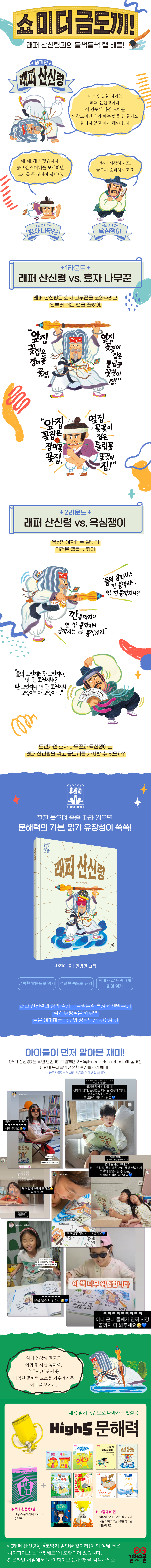 읽기 유창성은 하루아침에 자라지 않습니다. 좋아하는 글을 즐겁게 반복해서 꾸준히 읽어야만 읽기 유창성을 키울 수 있어요. 《래퍼 산신령》으로 신나는 잰말놀이를 배우고, 문해력의 기본이 되는 읽기 유창성도 쑥쑥 키워 보세요.