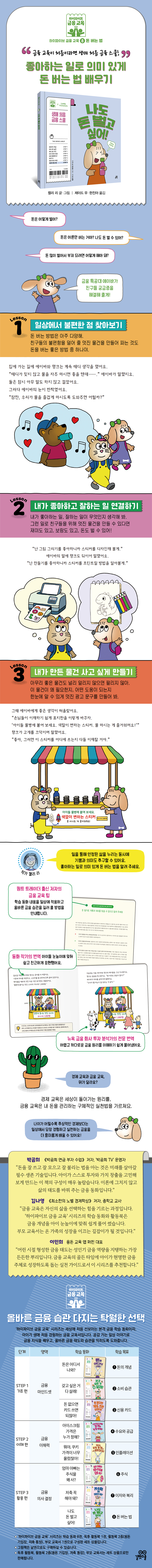 《나도 돈 벌고 싶어!》는 ‘하이파이브 금융 교육’ 시리즈의 여덟 번째 학습 동화입니다. 경제 교육이 돈이 움직이는 원리를 가르친다면 금융 교육은 내 돈을 잘 관리하고 안전하게 지키며 가치 있게 불리는 법을 가르칩니다. 휴대 전화 화면을 몇 번 터치하는 것만으로 언제 어디서든 소비·대출·투자가 가능해지고, 하루가 멀다고 신종 금융 사기 뉴스가 들려오는 요즘, 교육 선진국에서는 아이들에게 경제가 아니라 금융을 먼저 가르치고 있습니다.